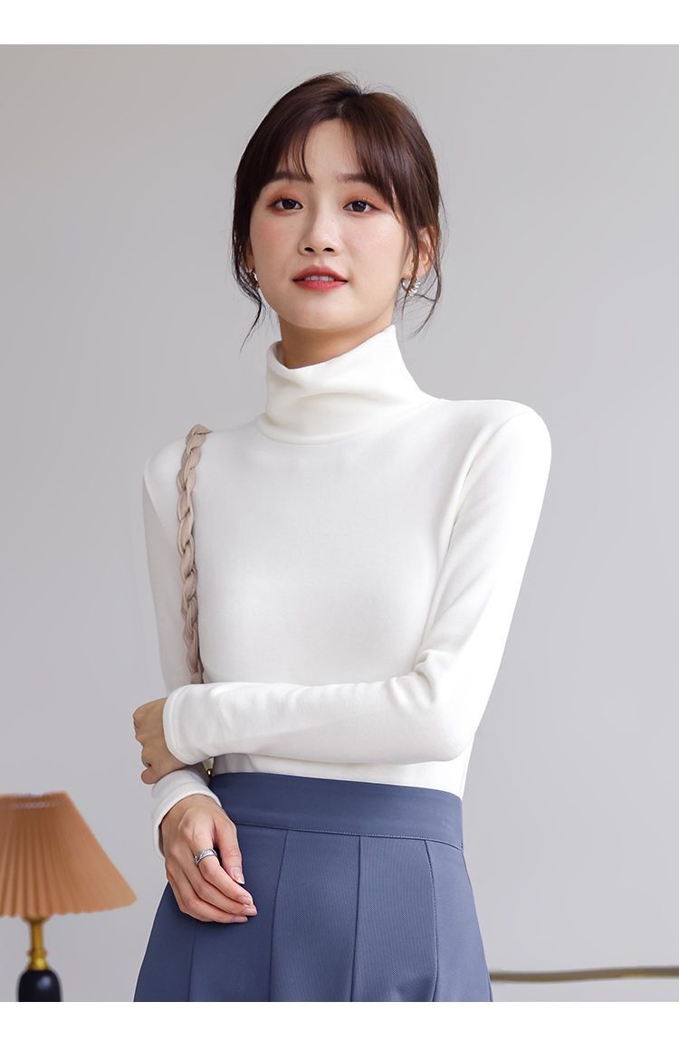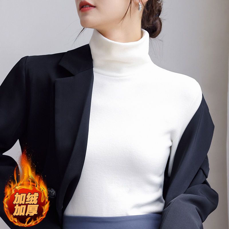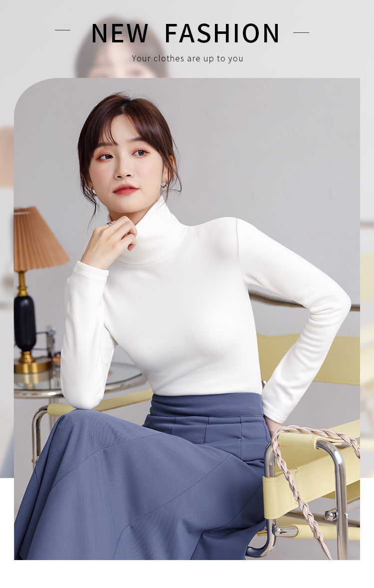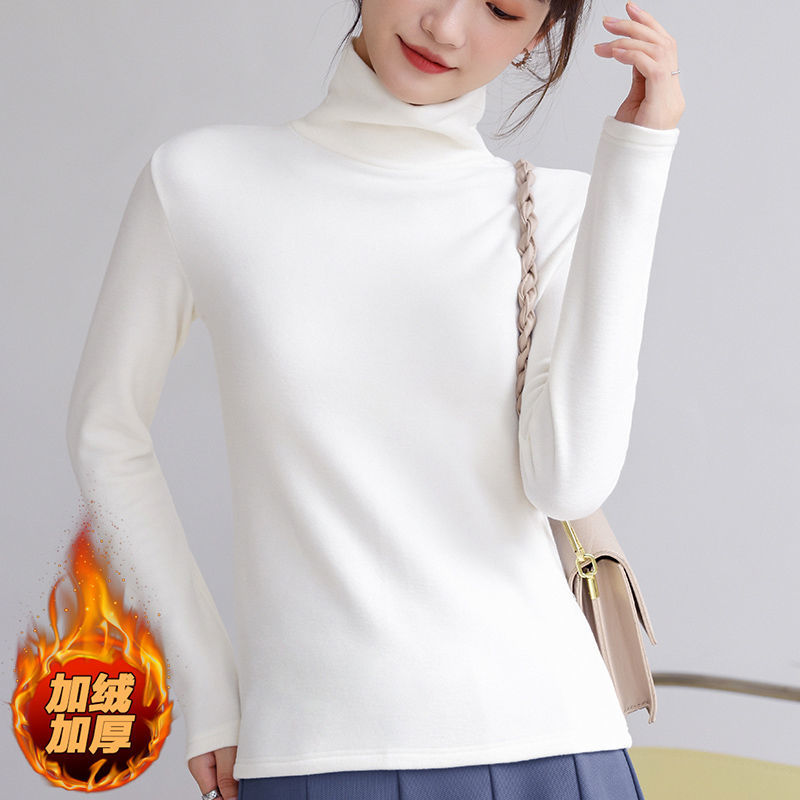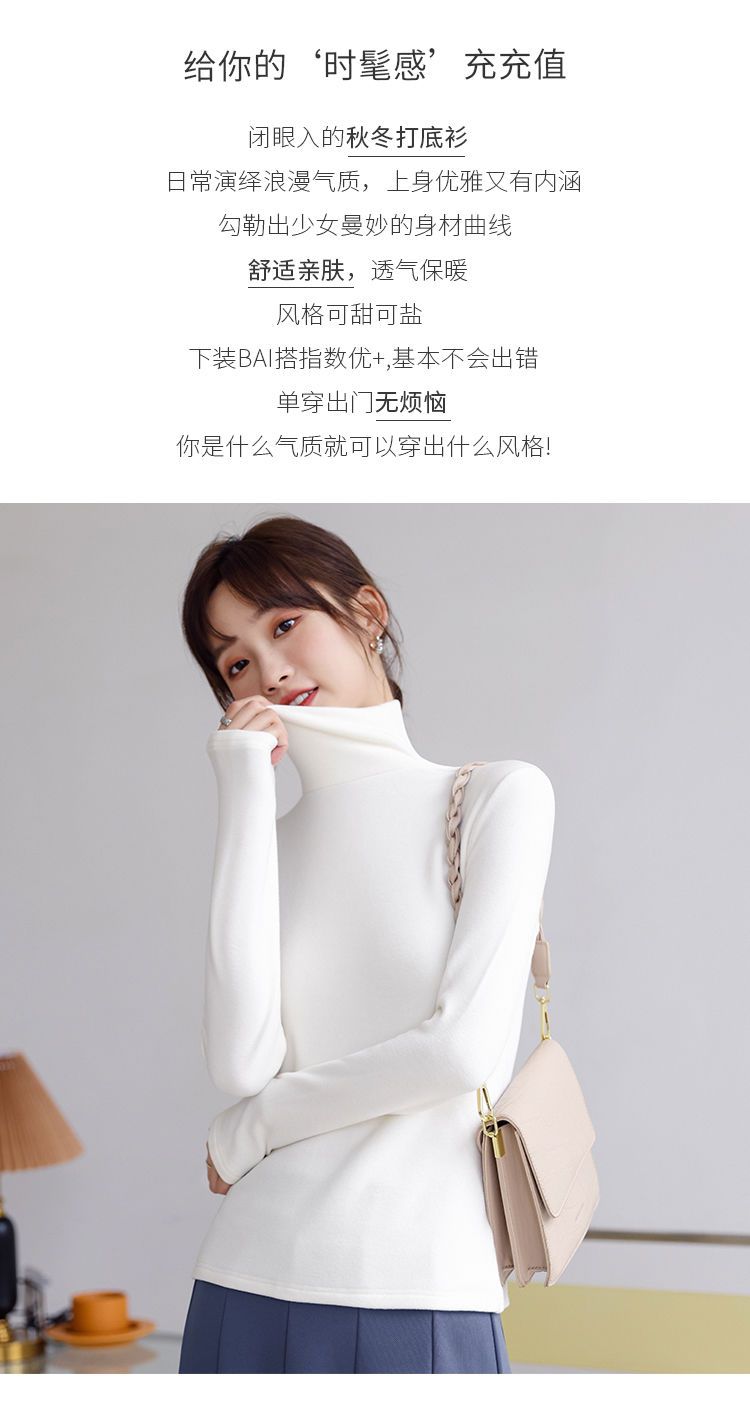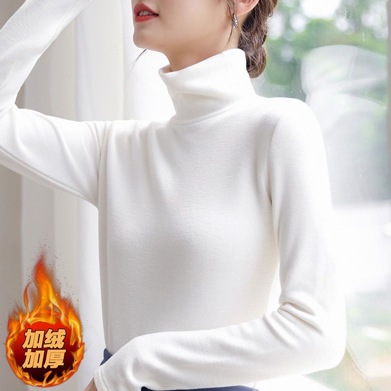 德絨高領打底衫女新款秋冬款修身內搭加絨加厚遮肚子秋衣