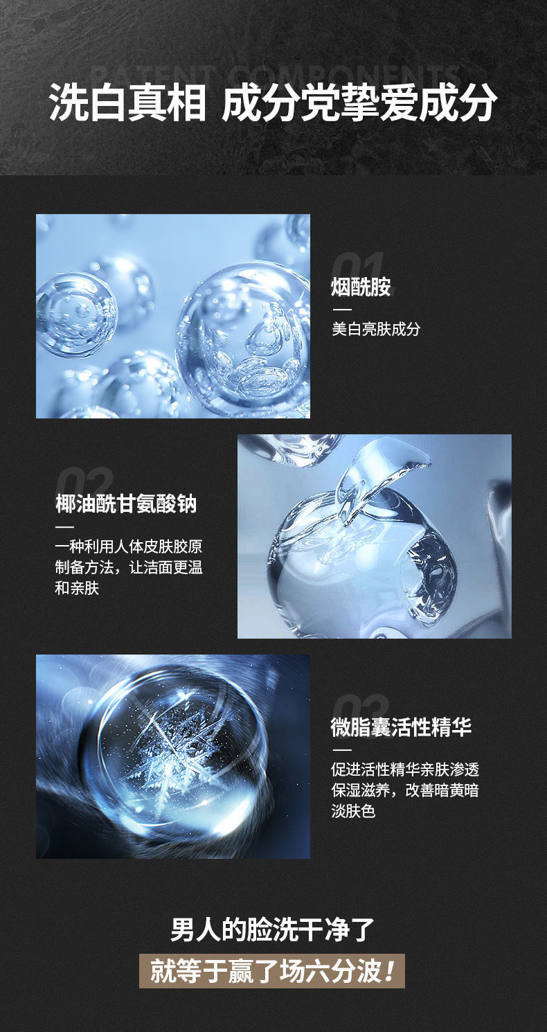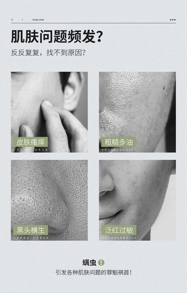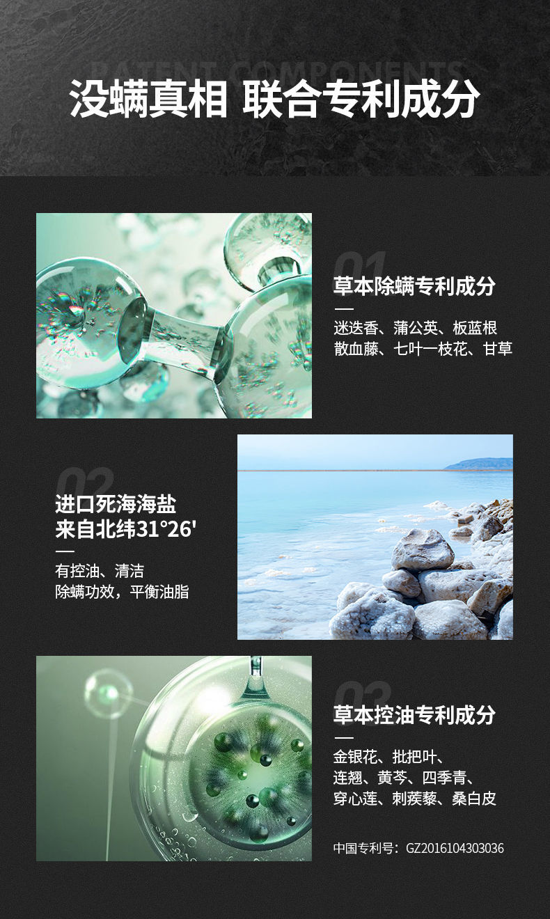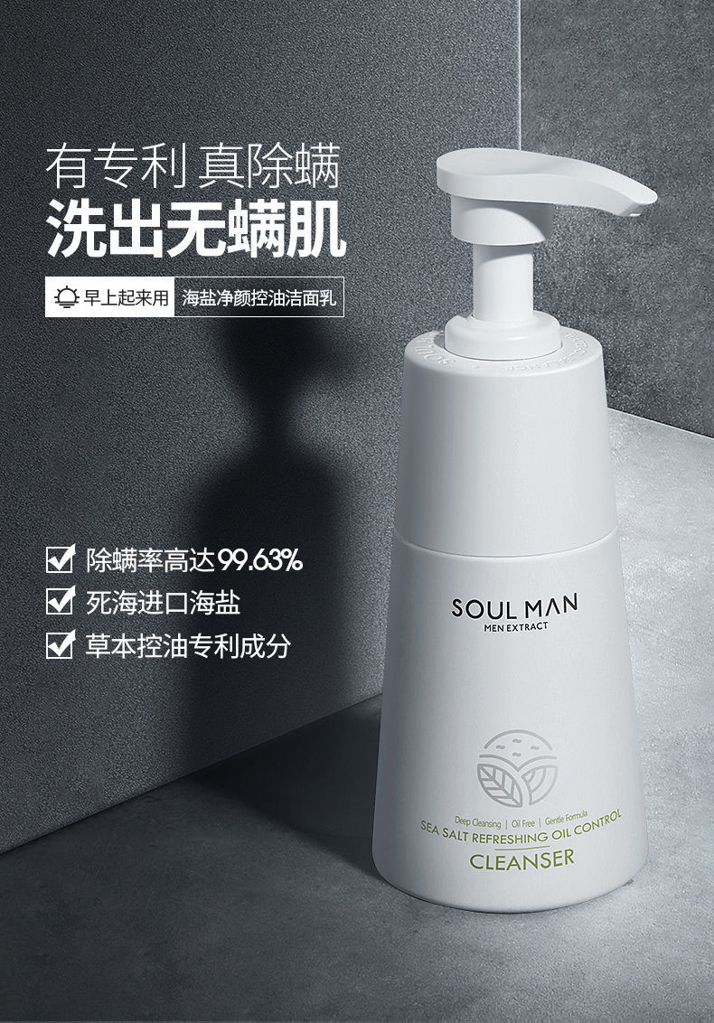 男士专利除螨,约旦死海海盐净肤,植萃祛痘,双重保湿,有效除螨高达99%,除螨控油更保湿!