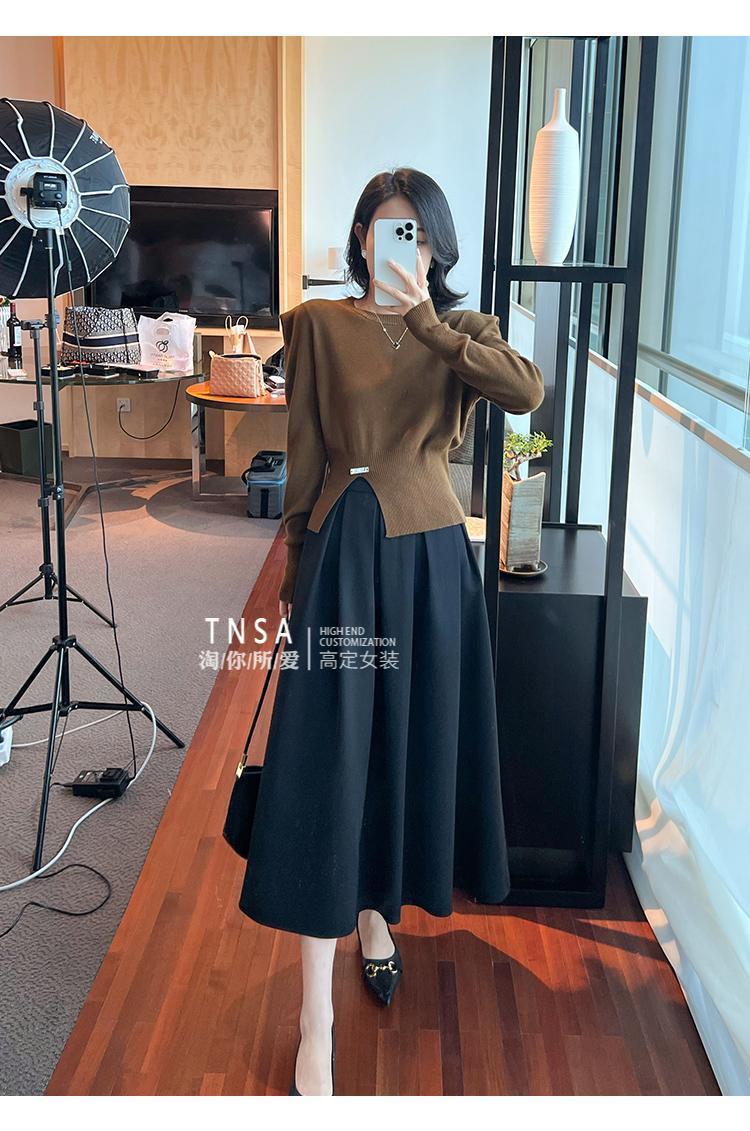 咖啡上衣+黑色裙子