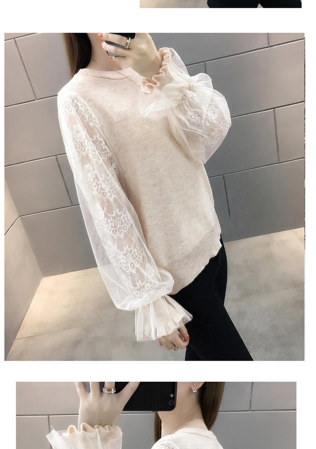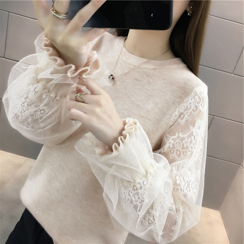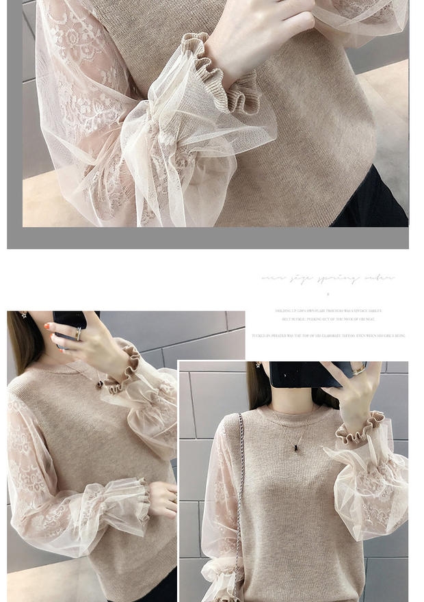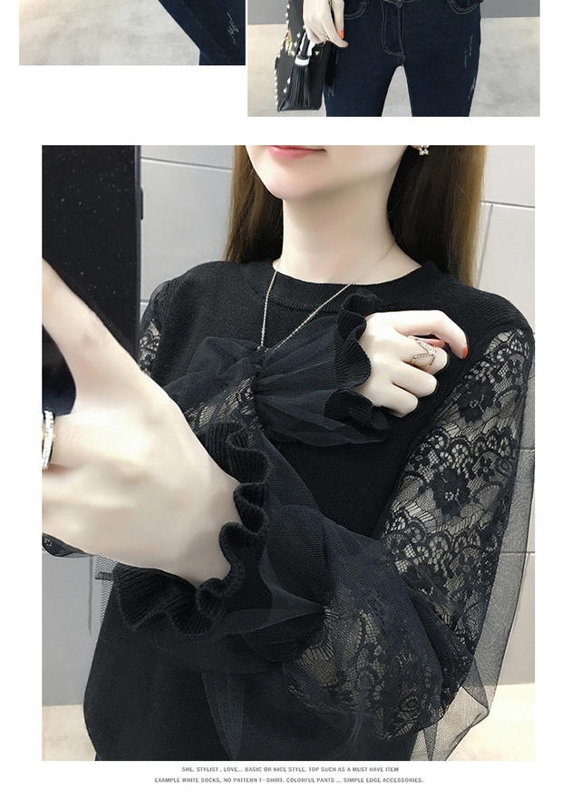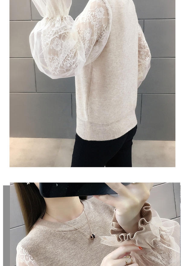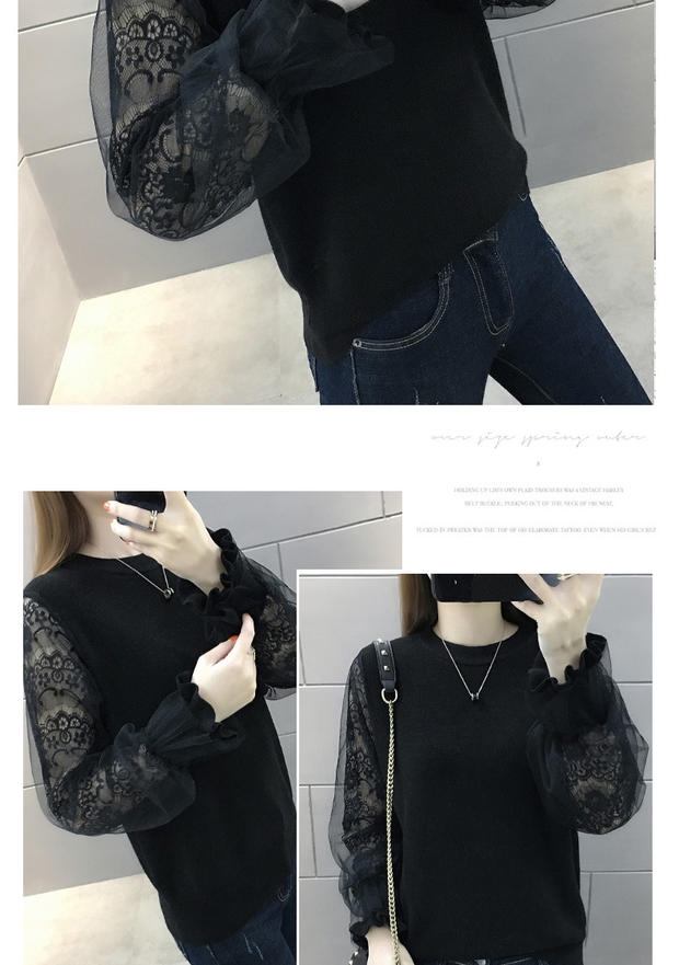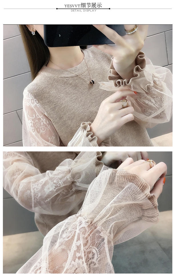 韩版宽松网纱蕾丝拼接针织衫百搭上衣