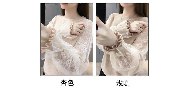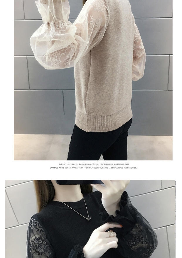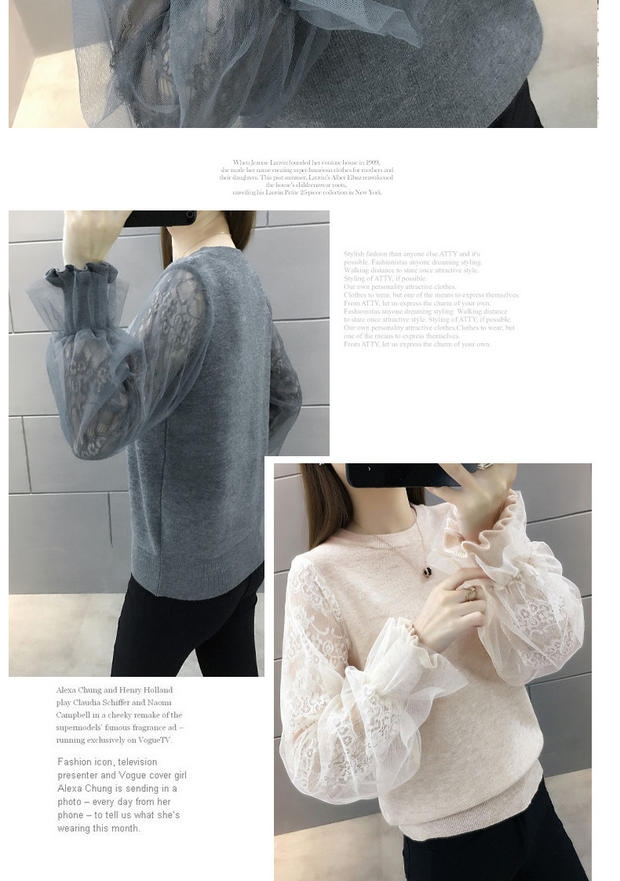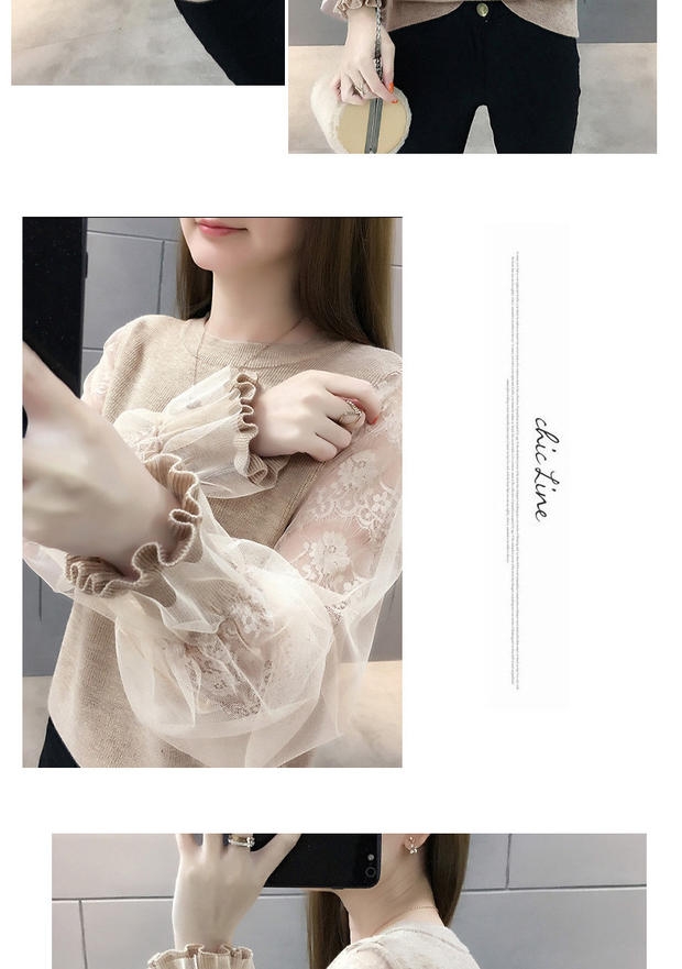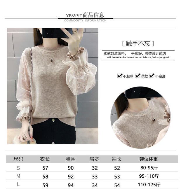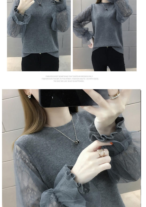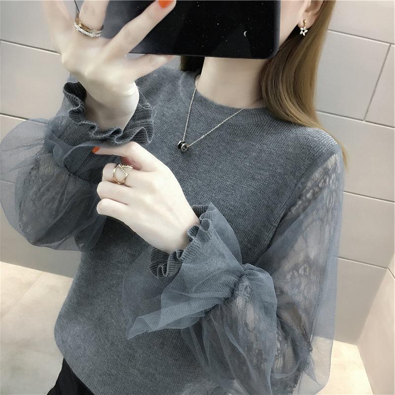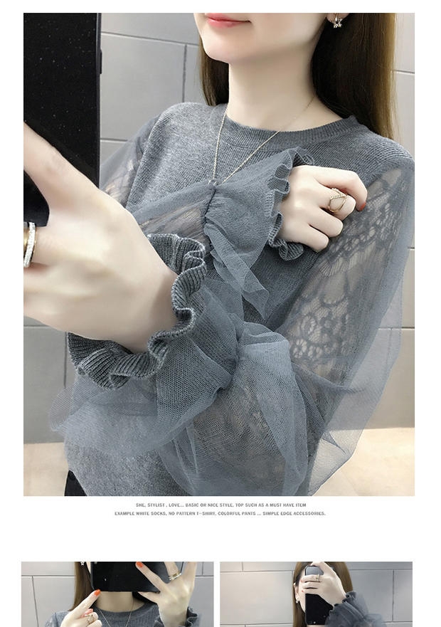 韩版宽松网纱蕾丝拼接针织衫百搭上衣