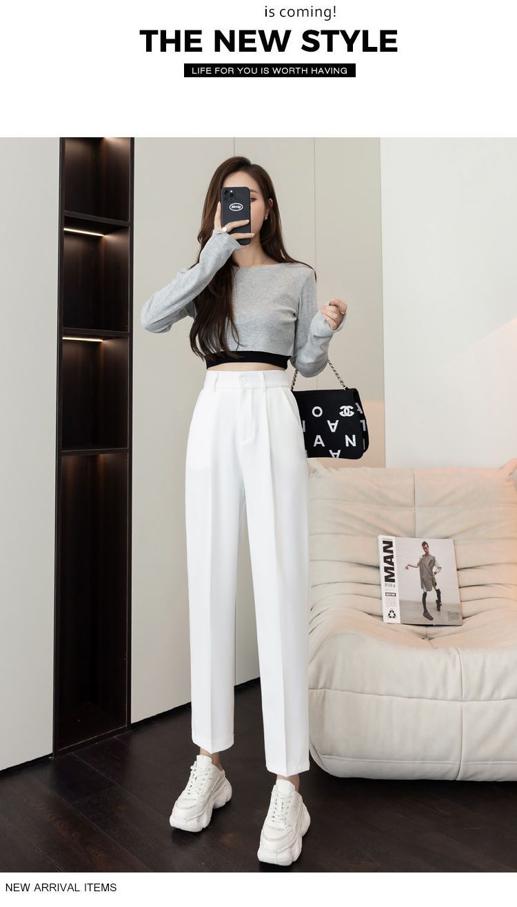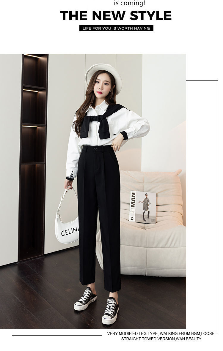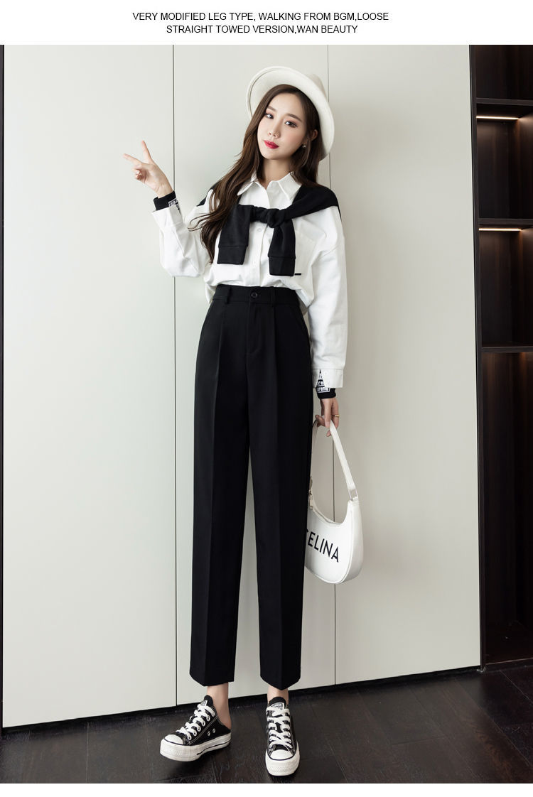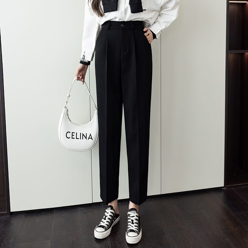 顯瘦九分哈倫褲高腰直筒寬鬆褲子
